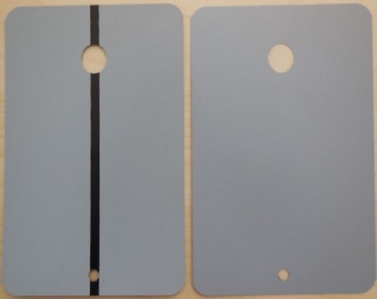Étiquette gris clair 7001 / 105mm x 148mm avec trous 15mm et 6mm, bande cotraster